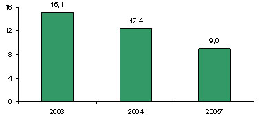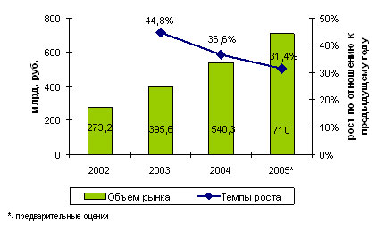 По предварительным итогам 2005 года доходы в российской телекоммуникационной отрасли выросли на 31 %, между тем как год назад этот показатель составлял 37 %, а еще годом ранее — 45 %. Это означает, что темпы роста отечественного рынка телекоммуникаций замедляются, хотя и остаются высокими по сравнению с другими секторами российской экономики.