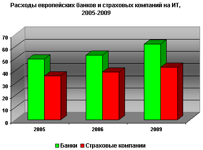 Европейский рынок банковской информатизации переживает сейчас не лучшие времена, что связано как с негативными тенденциями самого финансового сектора, так и с введением ряда законодательных ограничений в Европейский рынок информационных технологий для банков находится на пороге структурного перелома — к такому выводу пришли аналитики агентства IDC, проведя исследование финансового сектора. С этим утверждением трудно не согласиться. Рынок банковской информатизации переживает сейчас не лучшие времена. С одной стороны, сказываются негативные тенденции, характеризующие текущее развитие банковской отрасли в целом. С другой стороны, вводится ряд законодательных ограничений в собственно К наиболее актуальным тенденциям банковской отрасли можно отнести нарастание конкурентного давления — здесь и на смежных рынках, усиление процессов слияний и поглощений, а также изменение модели поведения клиентов. Испытывая сильное конкурентное давление отрасли, менеджмент банков вынужден пересматривать традиционные модели ведения бизнеса, что приводит к ломке сложившихся подходов к автоматизации банковской среды. Нарастание конкуренции вызвано одновременным действием нескольких факторов, наиболее важным из которых является усиливающаяся консолидация, причем, не только банковской, но и смежных отраслей. Консолидация происходит как за счет добровольных объединений, так и за счет враждебных поглощений участников рынка. Интенсивность процессов консолидации европейской банковской отрасли проявляется в росте интенсивности процессов слияний и поглощений (M&A). Последствия таких объединений проявляются для участников рынка двояко. С одной стороны, угрозы поглощения становятся реальными даже для старейших и устойчивых европейских банков, что заставляет их пересматривать стратегии выживания в изменившейся среде. В свою очередь, это требует эффективного использования имеющихся ресурсов, снижения издержек, реструктуризации непрофильных подразделений, к которым относятся и С другой стороны, новые структурные образования банковской отрасли — созданные альянсы и консолидация активов требуют эффективного управления, а значит, оптимизации Указанные процессы находят отражение и в изменении роли информационных технологий в продуктовой политике банковской сферы. Сегодняшние реалии финансового сектора таковы, что новые продукты копируются конкурентами с «космической скоростью». Это требует постоянного расширения продуктового портфеля банка и ускорения процессов создания новых продуктов. В подобной ситуации, по мнению Й. Хопперманна (Jost Hoppermann), Источник: TowerGroup, 2005 Важным фактором развития информационных технологий в банках является и борьба за потребителей банковских услуг, — как физических, так и юридических лиц, причем, речь идет не столько о новых и потенциальных клиентах, сколько об удержании уже имеющихся. Поскольку ценовые факторы не имеют решающего значения, чтобы удержать потребителя, на первый план выходят такие факторы, как скорость обслуживания, возможность управление счетом с помощью интернета Вопреки прогнозам, постоянно растущий спрос на ИТ в банковской сфере вызвал не столько рост рынка систем автоматизации для банков, сколько ломку его структуры. Виновником подобного перекоса является законопроект BaselI