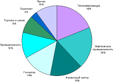 За прошедший год отраслевая структура отечественного ИКТ-рынка не претерпела существенных изменений. Банковско-страховой сектор, оставаясь одним из крупнейших потребителей высокотехнологичной продукции, уступает по затратам телекоммуникационным компаниям и предприятиям нефтегазовой промышленности. Несмотря на это, отечественный финансовый рынок сохраняет значительный потенциал для своего дальнейшего роста, поскольку его сегодняшнее состояние далеко от зрелого уровня. По мере его развития будут расти и потребности финансовых организаций в ИКТ. В среднесрочной перспективе, по прогнозам iKS-Consulting, ожидается реализация большого потенциала региональных финансовых рынков. Сохранится существующая структура ИКТ-рынка при некотором снижении доли нефтегазовой промышленности и росте доли финансового сектора. При этом доля затрат на телекоммуникационные услуги и оборудование в общем объеме затрат оценивается на уровне 45 %.