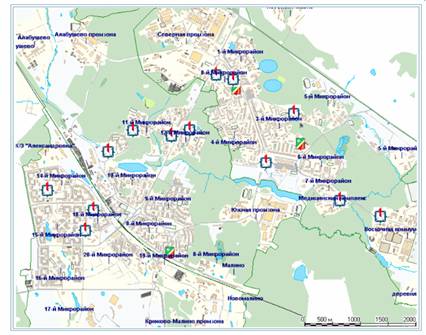Расположение служб «одного окна» на карте Зеленограда (в геоинформационной системе Зеленоград) (рис. 7)