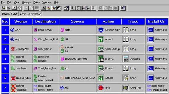 РАЗГРАНИЧЕНИЕ ДОСТУПАТехнологии Интернет позволяют создать экономически выгодную глобальную коммуникационную инфраструктуру, которая обеспечит доступ в мировых масштабах работникам компании, покупателям, производителям оборудования, поставщикам и ключевым партнерам по бизнесу. Это является существенным расширением возможностей обмена совместно используемой информацией, однако увеличивает вероятность риска подвергнуть свою корпоративную сеть новым рискам и угрозам. Как организация может противостоять неавторизованному доступу и защитить свои ресурсы и информацию? Контроль доступа - фундаментальный элемент любой политики безопасности, непосредственно ориентированный на решение этой задачи. Чем обмениваются сети предприятия?Разграничение доступа защищает организацию от потенциальных угроз благодаря четкому специфицированию и контролю за тем, какие информационные потоки и коммуникации могут проходить через пограничный шлюз сети организации. Ключевой особенностью устройств, обеспечивающих контроль доступа, является их полная осведомленность обо всех коммуникациях, сетевых сервисах и приложениях. Первые реализации средств защиты на основе пакетных фильтров (обычно выполняются на маршрутизаторах) не имеют данных о состоянии приложения и не могут обрабатывать трафик UDP и динамических протоколов. Средства защиты сетей второго поколения - основанные на использовании приложений посредников (proxy) - требуют, зачастую, очень мощных компьютеров и достаточно медленно адаптируются к появлению новых сетевых служб Интернет, которые появляются регулярно. В противовес этому, технология stateful inspection, реализованная в Check Point FireWall-1, дает шлюзу полную информацию о коммуникациях, что совместно с объектно-ориентированным подходом в описании сетевых ресурсов и сервисов позволяет быстро и легко адаптировать систему к новым услугам Интернет. FireWall-1 предоставляет исчерпывающие возможности по контролю доступа для более чем 160 предопределенных сервисов Интернет и имеет средства для удобного специфицирования новых сервисов пользователя. В дополнение к перечисленным возможностям, FireWall-1 позволяет регулировать доступ к ресурсам сети, учитывая время. Это дает возможность существенно детализировать процессы работы с ресурсами сети, создавая правила, обеспечивающие доступ к ресурсам в определенные промежутки времени (могут учитываться минуты, часы, дни месяца, дни недели, месяц, год). К примеру, организация может решить ограничить доступ в Интернет для просмотра Web в рабочее время и разрешить в не рабочие часы. Другой пример - запретить доступ к критическим серверам на время проведения полного сохранения информации серверов. Создание политики безопасностиПроцесс описания правил разграничения доступа в такой хорошо спроектированной системе, как Check Point FireWall-1, прост и очевиден. Все аспекты политики информационной безопасности организации могут быть специфицированы с использованием графического интерфейса FireWall-1, который неоднократно завоевывал различные (http://www.checkpoint.com/awards/index.html) награды. При определении элементов сети применяется объектно-ориентированный подход. Будучи создан, объект затем используется для определения политики безопасности при помощи редактора правил. Каждое правило может оперировать любой комбинаци