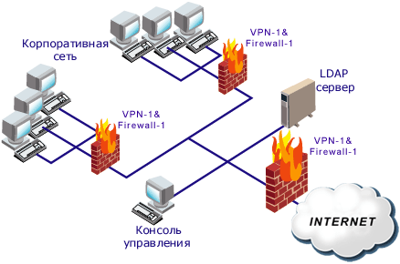 Компоненты CheckPoint Firewall-1 & VPN-1 используют указанную информацию для разграничения доступа внешних и внутренних пользователей к защищаемым корпоративным ресурсам. При запросе доступа к защищаемому ресурсу, Firewall-1 (или VPN-1) запрашивает права доступа данного пользователя на LDAP-сервере и, в случае наличия таких прав, разрешает такой доступ. При этом все взаимодействие между LDAP-сервером и запрашивающим компонентов защищается при помощи протокола SSL.
