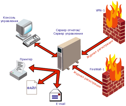 - Reporting Server - предназначен для сбора данных от VPN-1, Firewall-1 и GloodGate-1, их объединени, и генерации отчетов на основе имеющихся правил.