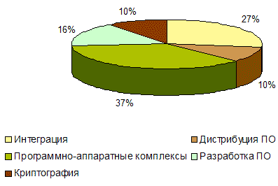 Наиболее широко представленные в рейтинге компании, специализирующиеся на программно-аппаратных комплексах, увеличили за год свою суммарную выручку на 24%. Игроки этого сектора в первую очередь ощутили на себе последствия Административной реформы 2004 г., несколько затормозившей ИТ-проекты. Впрочем, как комментируют представители компаний, уже в первой половине 2005 г. ситуация вернулась в прежнее русло, и работа по отложенным контрактам возобновилась.