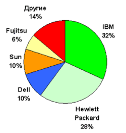 Доли крупнейших производителей на мировом рынке серверов, 2005