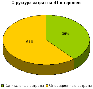 Ключевой задачей ИТ в торговле остается повышение управляемости розничной сетью, эффективность, прозрачность и гибкость бизнес-процессов. До 39 % от ИТ-бюджетов ритейлеров составляют сегодня капитальные затраты — на внедрение информационных систем и покупку лицензий ПО, в то время как 61 % приходится на установку приложений, адаптирующих приобретенные системы к конкретной информационной среде и бизнес-процессам предприятия.