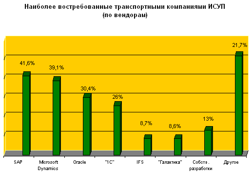 «Узкая специфика «транспортного» ПО часто не позволяет заказчикам проводить интеграцию и со смежными бизнесами компании, — отмечают в Microsoft Business Solutions. — Кроме того, имеющиеся на рынке системы для транспортников грешат отсутствием масштабируемости». В МЦФЭР, напротив, упрекают транспортные ИСУП в недостаточном внимании к специфике работы заказчиков. «Несмотря на то, что в «экономических» ИТ-решениях используются продукты известных мировых вендоров, в них не в полной мере находит отражение специфика транспортных предприятий, — отмечают в компании. — Это связано с тем, что изначально такие решения разрабатывались для производственных и торговых предприятий».