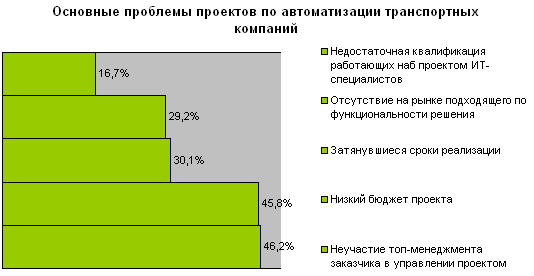 Говоря о проблемах внедрения ИТ-решения, в ВСС отмечают, что со стороны транспортной компании чаще всего наблюдается отсутствие единого понимания целей проекта и достаточного количества выделяемых под него людских ресурсов. Для вендоров характерно недостаточное понимание специфики транспортной отрасли. В свою очередь, интеграторы, выступающие фактическими исполнителями в таких проектах, вынуждены учитывать риски и пытаться их минимизировать, не имея при этом инструментов для оказания влияния на всех участников процесса. Кроме того, проблемы при реализации ИТ-проектов в транспортных компаниях зачастую исходят из нежелания заказчика раскрывать особенности своей модели бизнеса. «С одной стороны — это важнейший компонент успеха компании, который она тщательно охраняет, но с другой, без этой информации невозможно говорить об успешности проекта автоматизации», считают в ВСС.